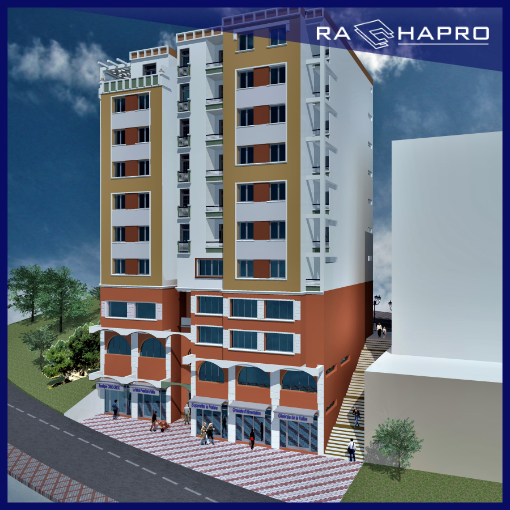Bâtiment en un seul bloc de R+7 et deux sous-sols sur une superficie totale de 740 m²